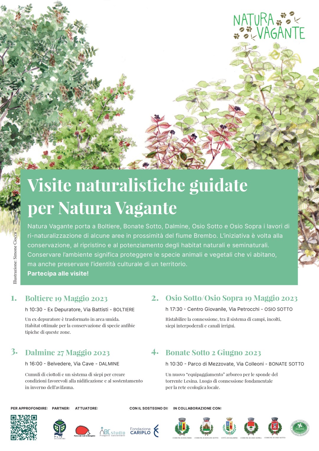L’iniziativa di Natura Vagante non si ferma solo a Boltiere ma anche in altre zone del PLIS del Basso Brembo come Bonate Sotto, Dalmine e Osio Sotto con visite e altri progetti.