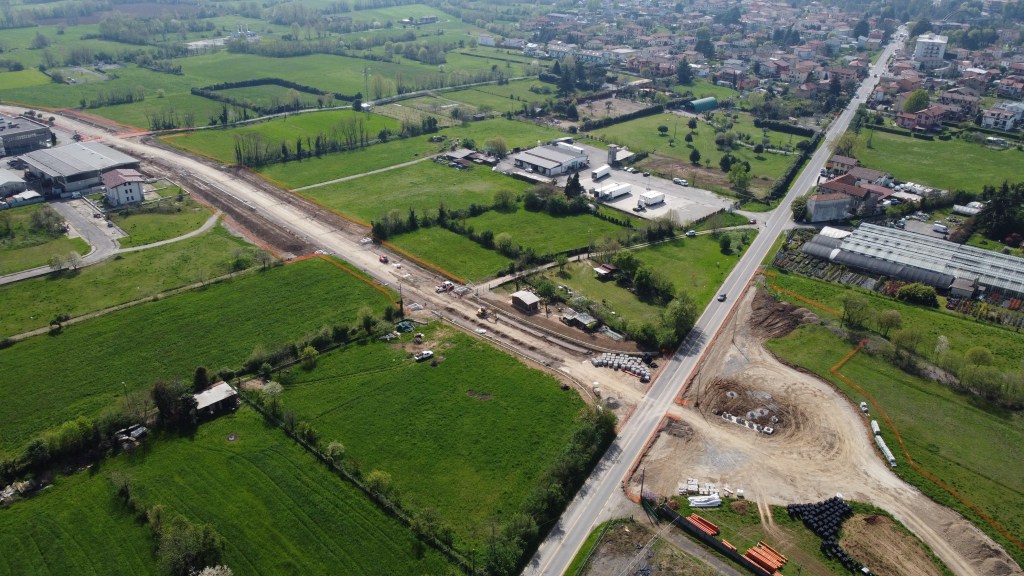 Nell’ultimo aggiornamento di fine febbraio, l’azienda Bergamelli aggiudicataria dei lavori aveva sbancato tutta la porzione di tracciato dal lato sud di Boltiere, verso il comune di Pontirolo Nuovo, fino all’intersezione con la ex strada provinciale 184 e anche verso Brembate, oltre che predispotto i passaggi dei sottoservizi.