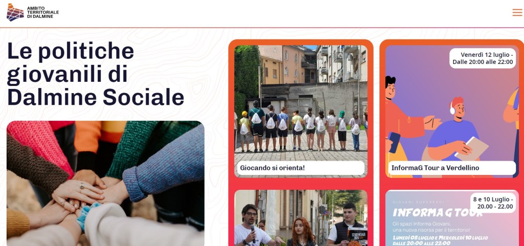 Raggiungibile all’indirizzo giovani.dalminesociale.it , al suo interno è possibile informarsi circa le attività dei vari comuni rivolte alla fascia di età 15-35 anni.
