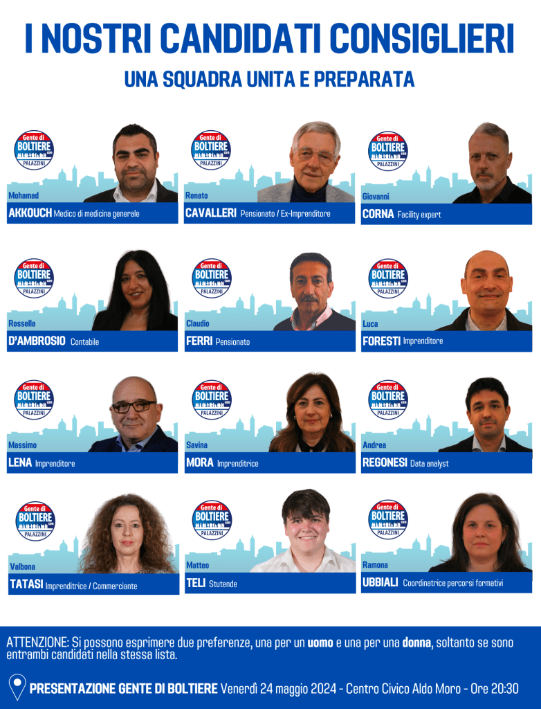 Ecco i nostri candidati per le prossime elezioni comunali dell’8 e 9 giugno.