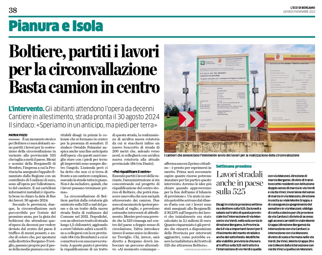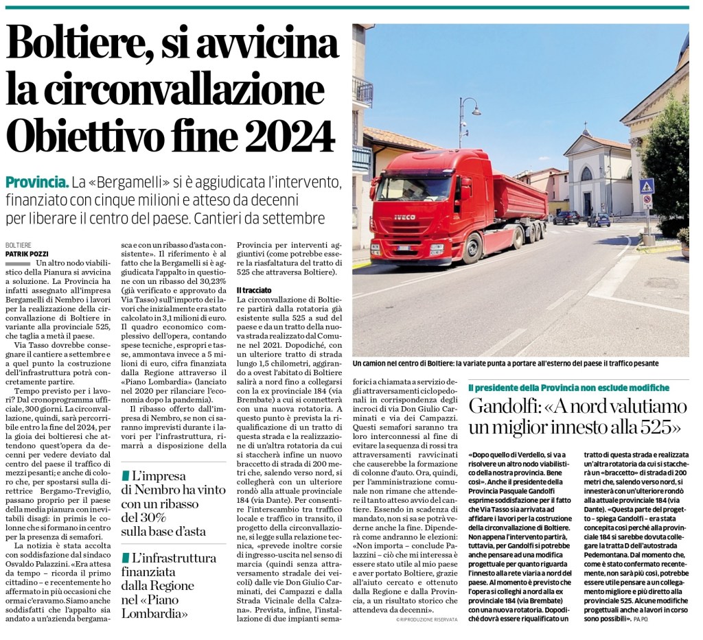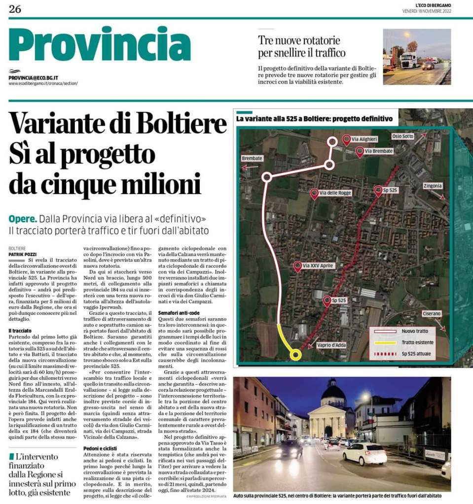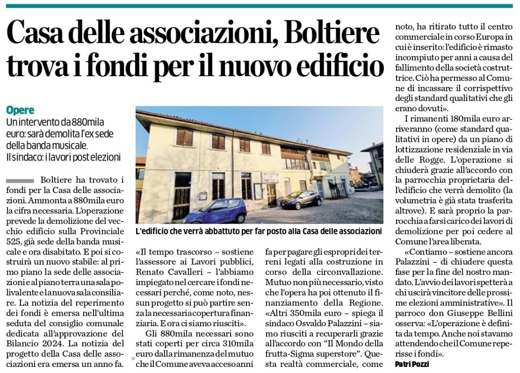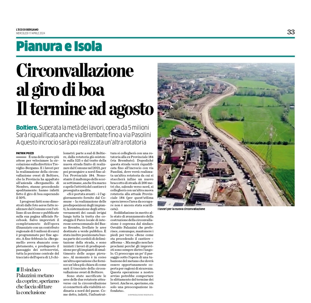 Boltiere - Centomilia Euro dalla Provincia di Bergamo